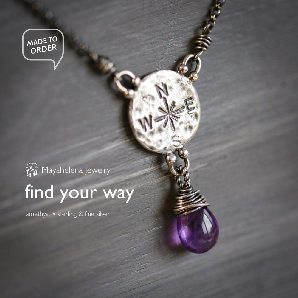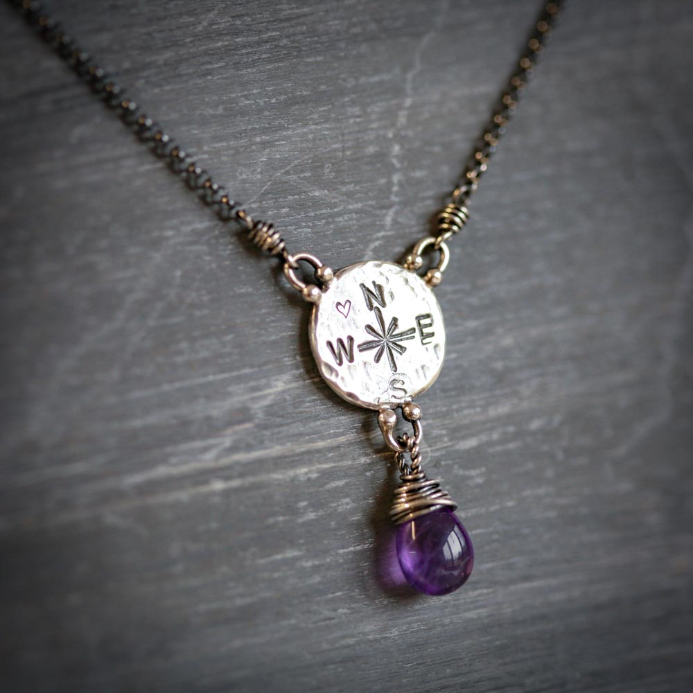 Find Your Way – Amethyst with Compass Charm Sterling Silver Necklace