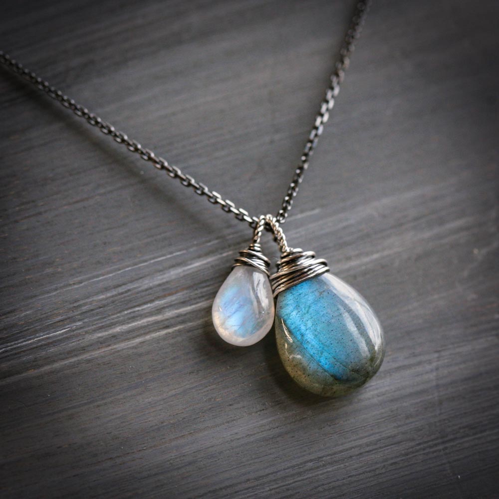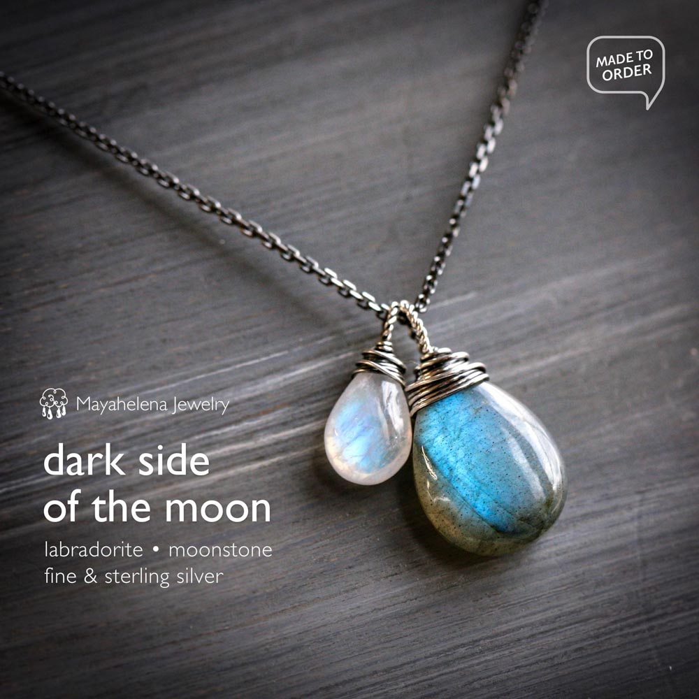 Dark Side of the Moon – Labradorite and Moonstone Wire Wrapped Sterling Silver Necklace
