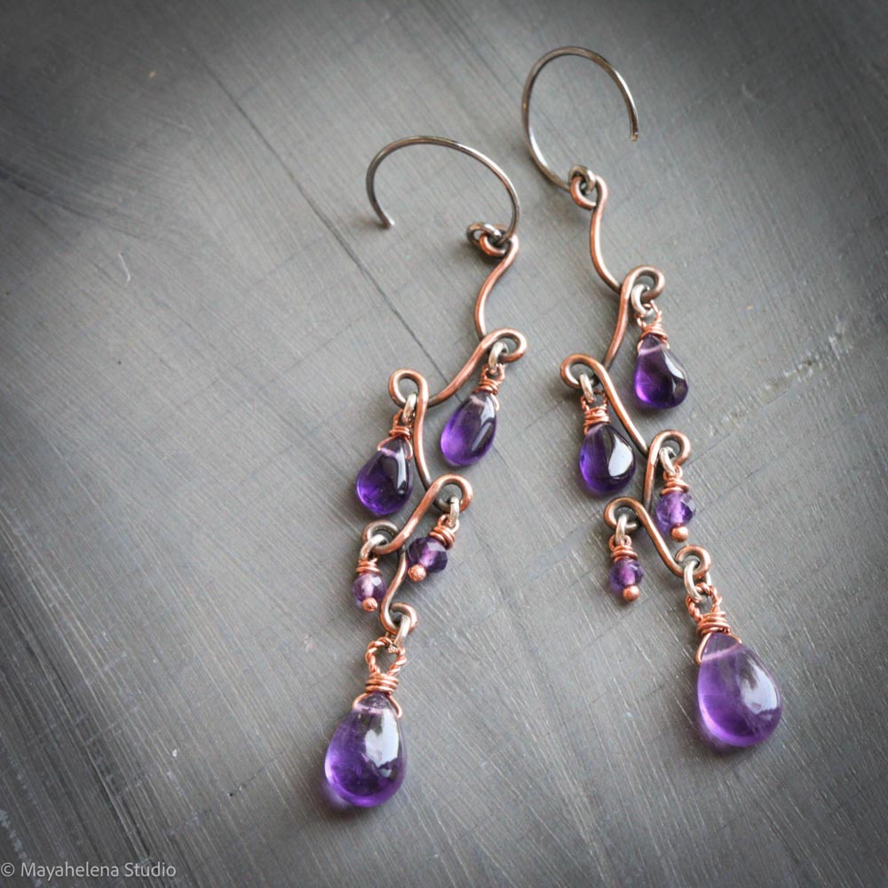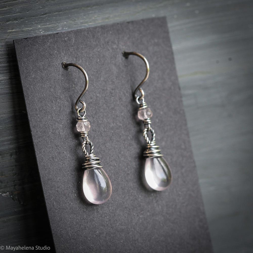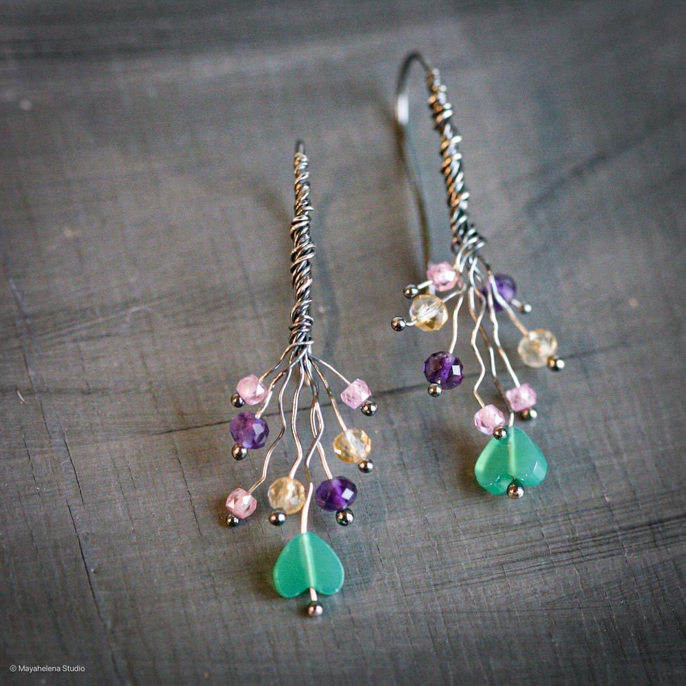 Chalcedony Heart Sterling Silver Earrings: Amethyst Citrine Jewelry