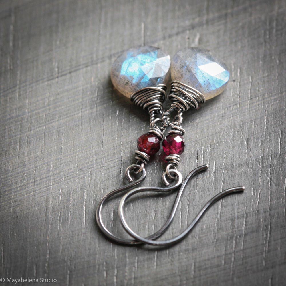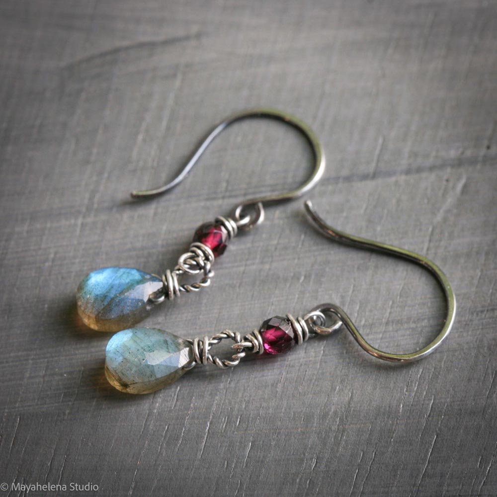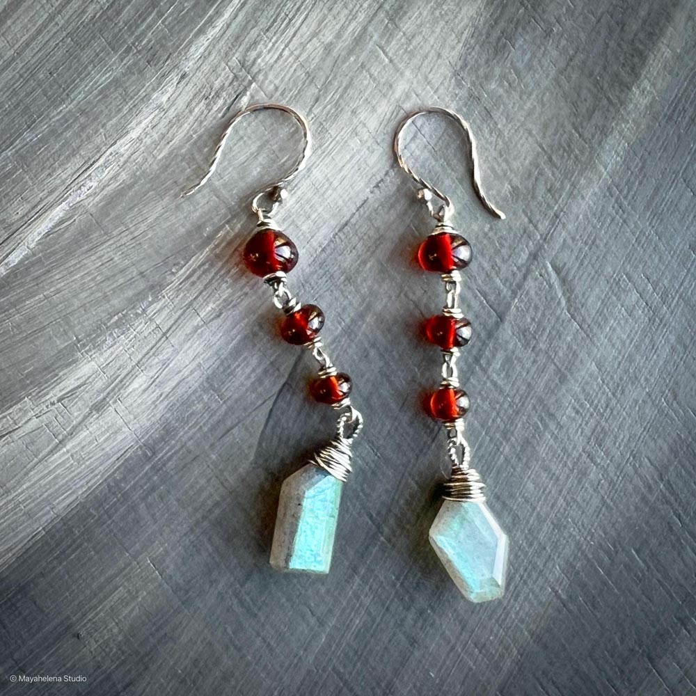Defiant – Labradorite Garnet Sterling Silver Earrings