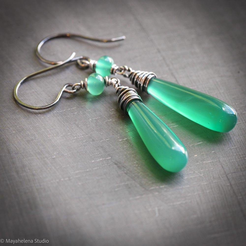 Dot the I – Green Onyx Sterling Silver Earrings