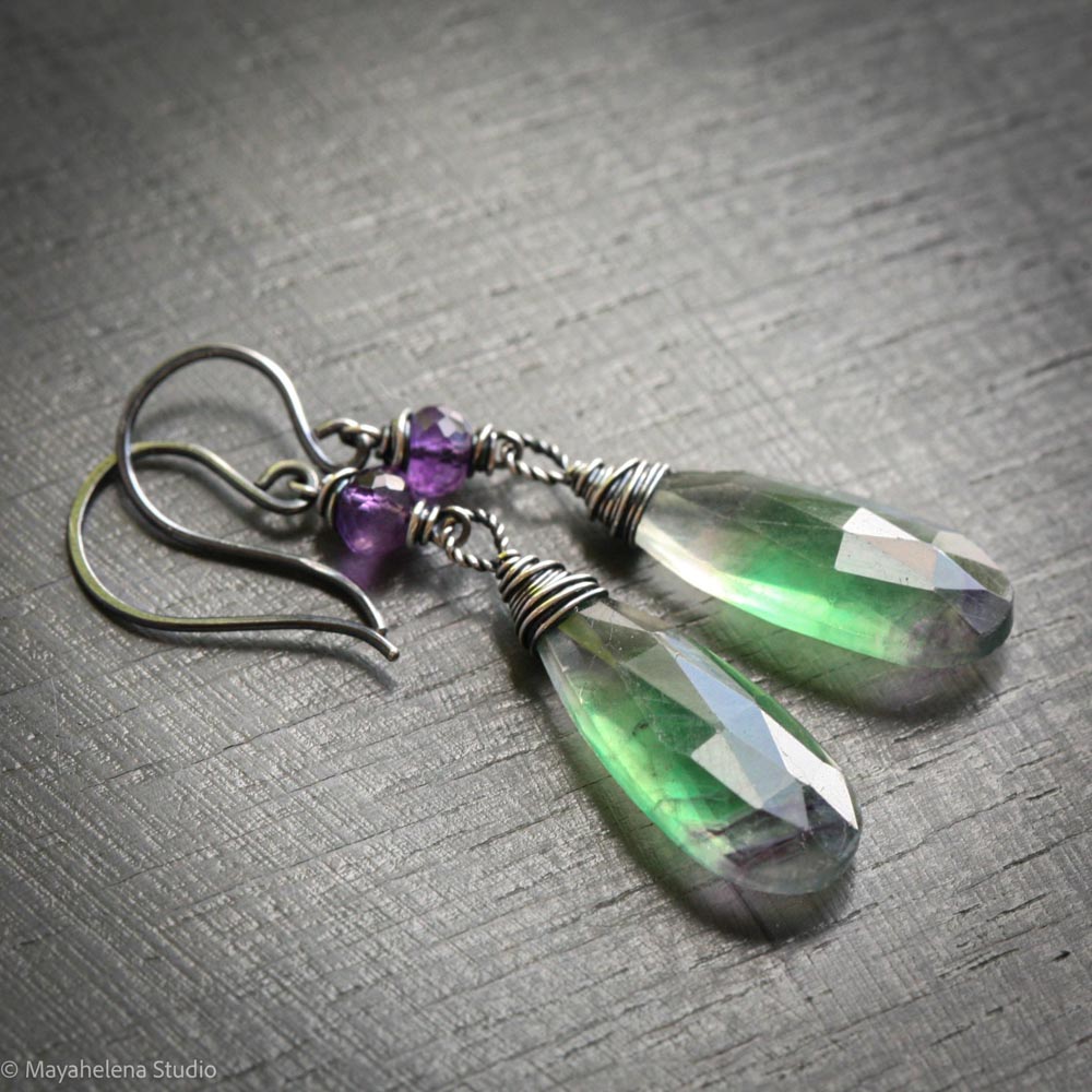 Cadence Fluorite & Amethyst Sterling Silver Earrings