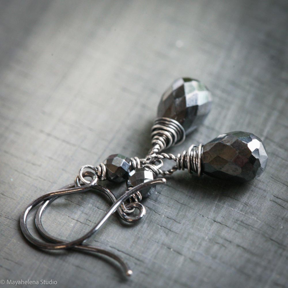 Dot the I – Hematite Wire Wrapped Sterling Silver Earrings