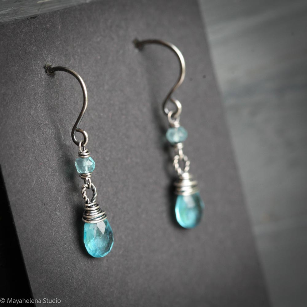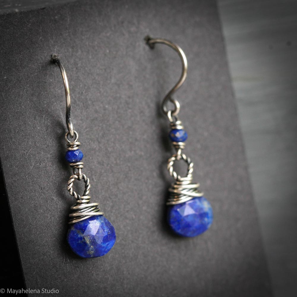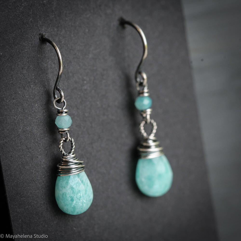 Trio of my favorite feldspars: blue labradorite, orange sunstone and rainbow moonstone are wire wrapped in oxidized wire and hun on hand forged ear wires. All the sterling silver elements have been oxidized and polished to bring out the texture and antiqued look.